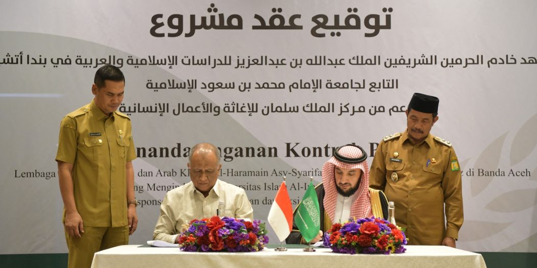 Penandatanganan kerja sama pembangunan gedung ini berlangsung antara pihak lembaga pendidikan dan kontraktor pelaksana, disaksikan langsung oleh Sekda Aceh bersama Wakil Bupati Aceh Besar. Turut hadir perwakilan King Salman Humanitarian Aid and Relief Centre, Universitas Islam Imam Muhammad bin Saud, serta sejumlah pejabat dan pemangku kepentingan lainnya.