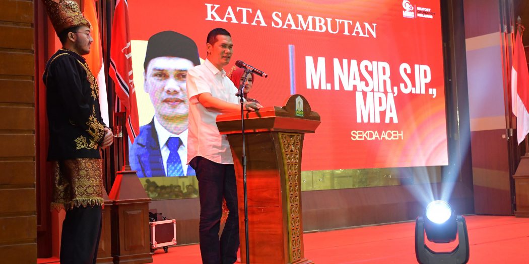 Sekda Aceh, M. Nasir, memberi sambutan pada penutupan Munas Muda Seudang II di Anjong Mon Mata, Banda Aceh, Minggu 21 September 2025. Dok/Adpim Setda Aceh
