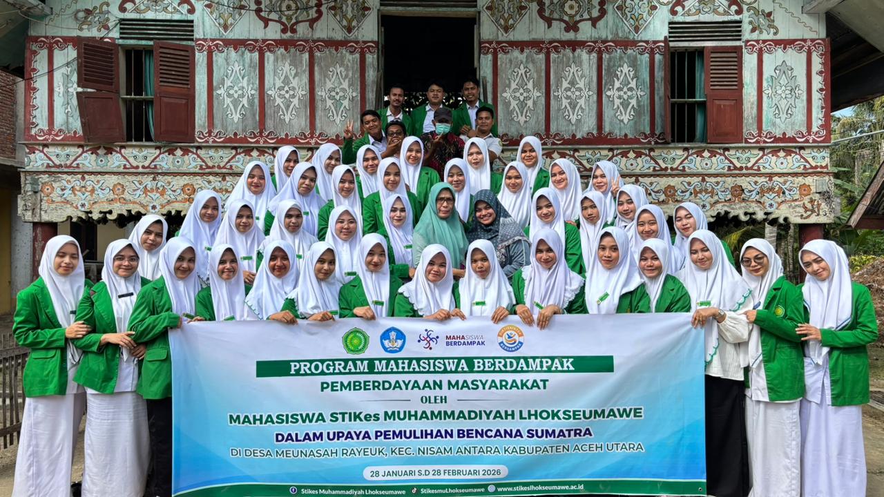 Program pengabdian masyarakat tersebut melibatkan sebanyak 50 mahasiswa dari STIKes Muhammadiyah Lhokseumawe, Meunasah Rayeuk. Minggu, 01 Maret 2026. Foto: Dok Humas STIKes Muhammadiyah