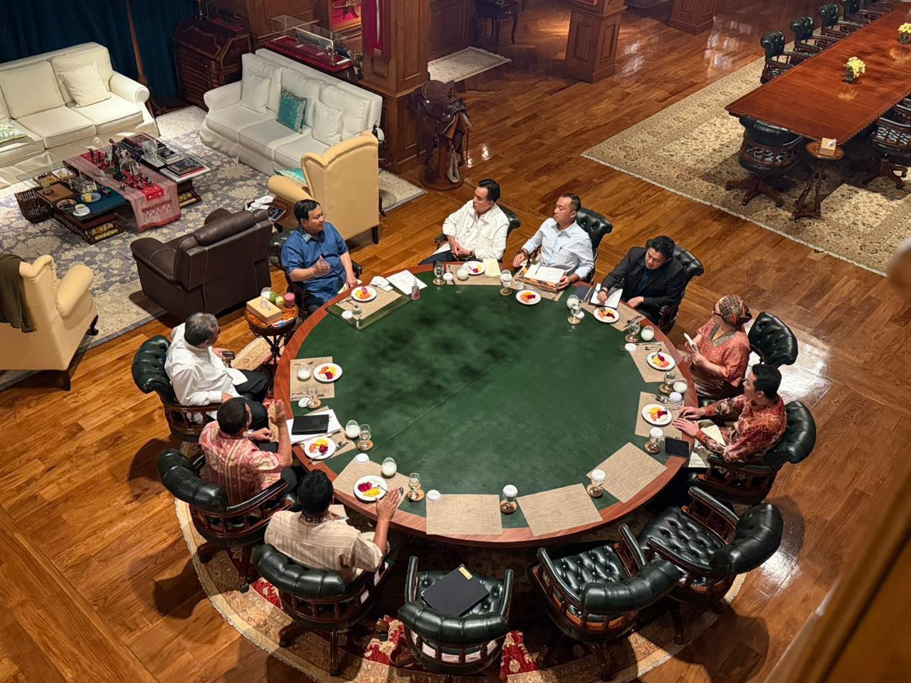 Prabowo Bahas Isu Nasional Bersama Ketua MPR Ahmad Muzani dan Jajaran Menteri di Hambalang